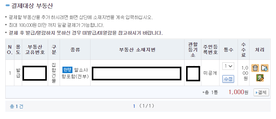 다음번에는 이렇게 출력한 부동산 등기사항 전부증명서를 가지고